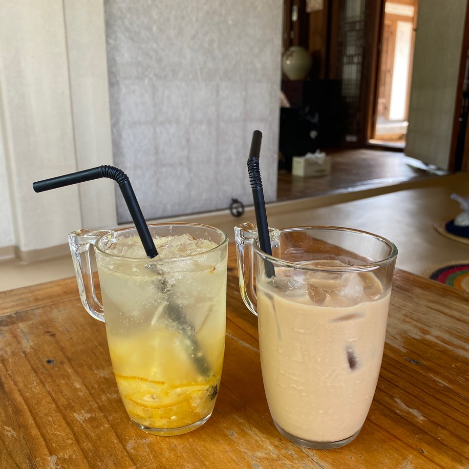 저는 한옥 느낌에 맞게 유자 에이드를 마시기로 했어요.