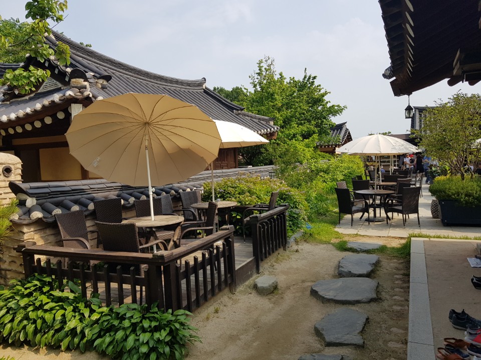 파라솔로 되어 있는 야외 자리도 있었는데 한옥 자리보다는 인기가 없었어요.