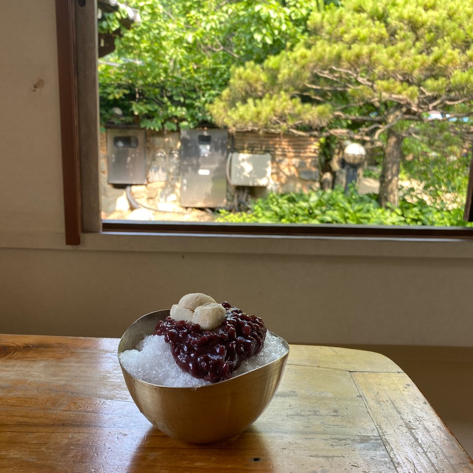 팥빙수를 두고 설정샷을 찍어보았어요.