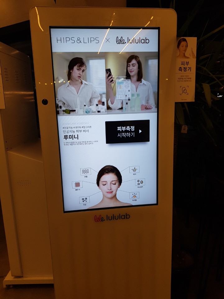 피부측정기는 처음 해보는데, 왼쪽 동그란 카메라에 얼굴을 들이밀고 있으면 측정기가 얼굴 사진을 찍어서 피부를 측정해주는 것이에요.